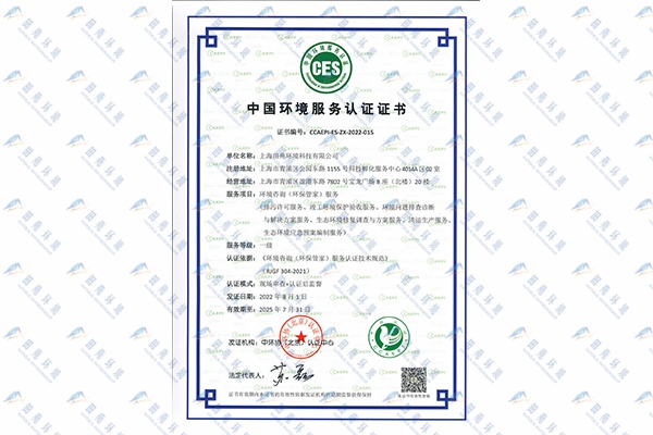 《中國環(huán)境服務(wù)認(rèn)證證書【環(huán)保管家一級】》